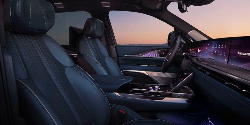Step inside the 2025 Cadillac Escalade IQ and experience a cabin designed for ultimate luxury and comfort. The 55-inch diagonal LED display stretches across the dashboard, seamlessly integrating all technology for an intuitive, user-friendly experience that gives access to vehicle info, wireless smartphone connectivity, and more. Premium materials like leather upholstery, finely crafted wood trim, and laser-etched metal create a sophisticated atmosphere. The Escalade IQ accommodates up to 7 passengers, with second-row bucket seats and a third row that folds flat to open up a massive 119.2 cu. ft. of cargo space. Indulge your passengers with the Executive Second-Row Seating Package that includes a 40-speaker AKG Studio Reference Audio System, dual 12.6-inch rear-seat entertainment displays, as well as heated, ventilated, massaging seats. This cabin is a destination in itself.