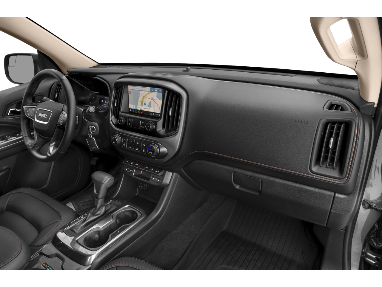 - Jet Black/Kalahari, Leather-appointed front seats Includes (IOS) 8" diagonal GMC Infotainment System, (AAQ) 4-way power front passenger seat adjuster, (AT9) power front passenger lumbar control and (KA1) heated driver and front passenger seats.)